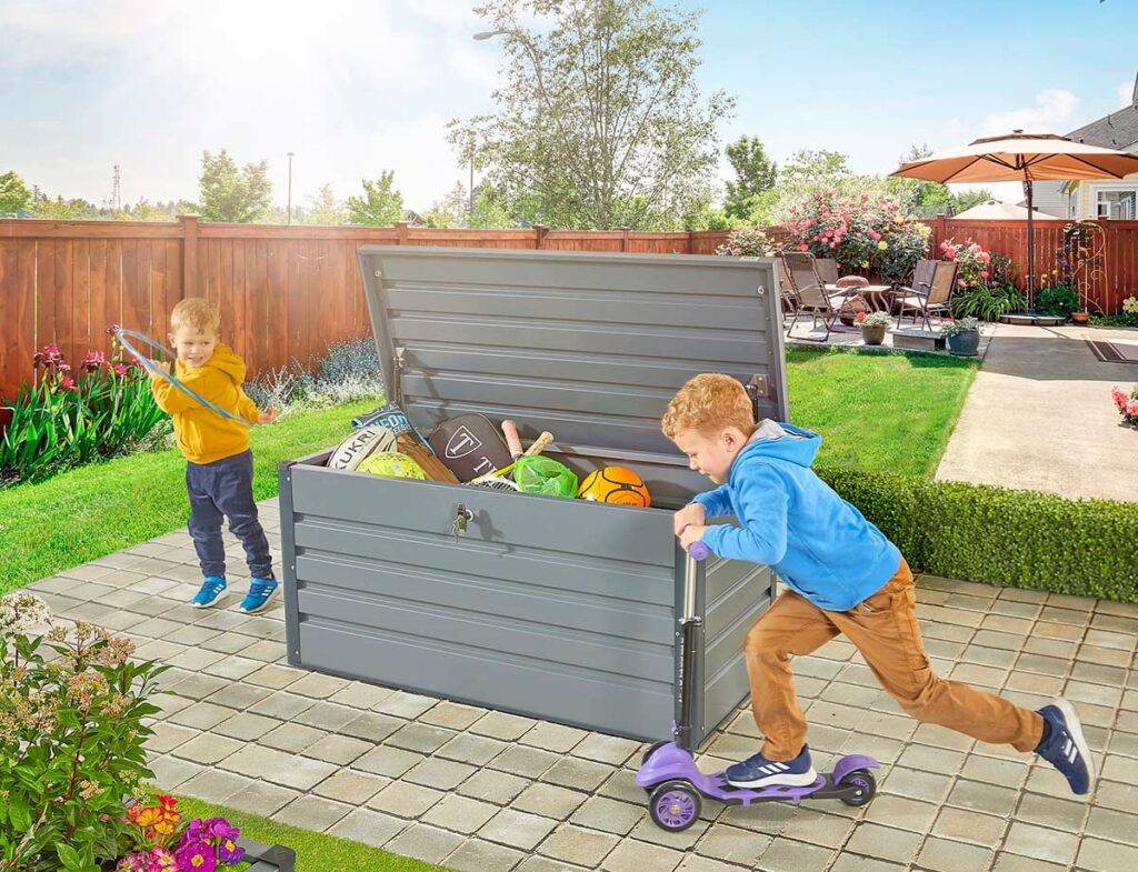 Once you have a secure garden storage solution and any garden hazards are securely tidied away, your children will be free to play outside without fear. But we also know you may need more than just an area to store garden tools. We understand that families with children always accumulate a lot of toys and games, as well as bikes and scooters; consequently, gardens can quickly become cluttered.